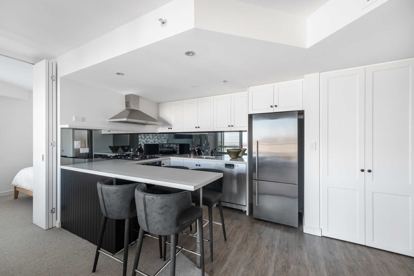 Stylishly renovated, fully furnished apartment on the 14th floor with an easterly aspect.