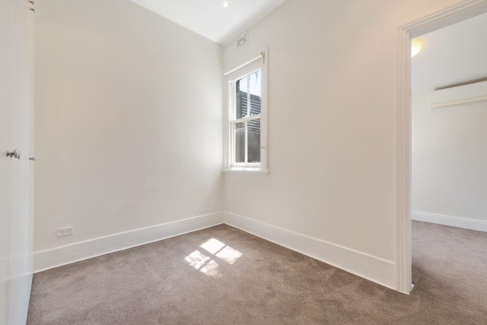 Third room (study/ nursery) with built-ins and split system air-conditioning unit – not large enough for double bed.